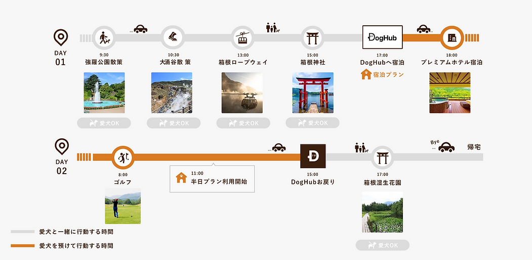 箱根には素晴らしい旅館やホテルがたくさんありますが、ペット不可の施設も多いのが現実です。 DogHub箱根仙石原の宿泊プランなら、愛犬を安心してお預けいただき、 お好きな宿での特別な時間をお楽しみいただけます。